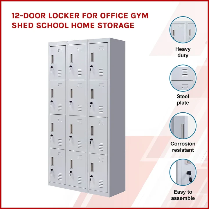 The unit has 12 individual locker compartments stacked in a 3 x 4 grid. Each locker provides ample space for personal items – and can hold up to 30 kg. Built-in ventilations slits keep the stored items from smelling musty. Users may also customise their locker with a name tag or label in the designated slot provided. This comes comes with Standard Lock with 2 Keys to ensure safety of your belongings.