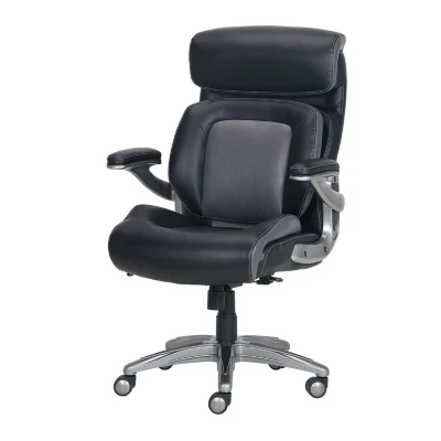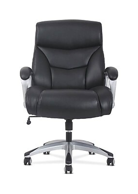 Classic black leather and a Silver frame make the Sadie 3-Forty-One big and tall chair perfect for executive spaces. Customize your comfort with an adjustable tilt lock and seat height. Fixed padded arms provide valuable upper body support, and 360-degree swivel enable total freedom of movement.
