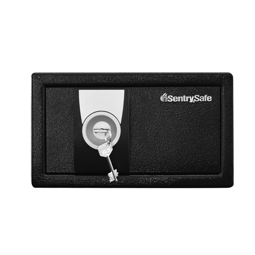The SentrySafe Key Lock Security Safe X031 is California DOJ Certified for firearm storage and is also ideal for protecting small but precious valuables. Solid steel construction, two live-locking bolts, and a key lock offer added security for your irreplaceable items. The X031 also provides scratch protection with a custom carpet interior.