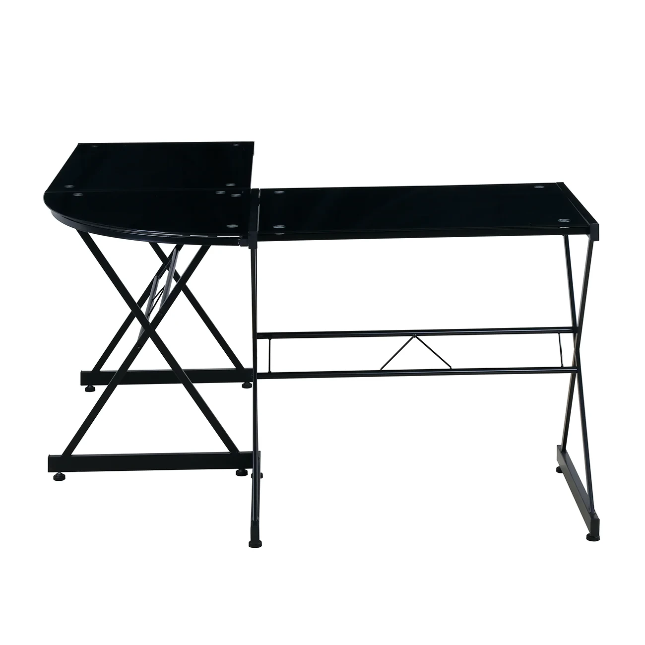If you are in need of a larger workspace in your office or home, check out the Techni Mobili L-Shaped Glass Computer Desk. This is an ideal solution for those who are stuck in cramped quarters and do not have any room to work on tasks throughout the day. It has a tempered glass top and a cross-frame design that provides a modern appeal and is reversible on the left or right hand. It has a powder-coated frame and floor glides. The design of this L-shaped glass desk is sure to complement a variety of decors. Colors: Black.
