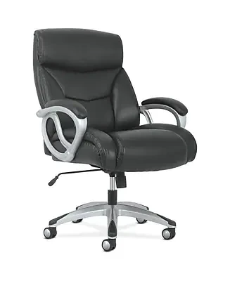 Classic black leather and a Silver frame make the Sadie 3-Forty-One big and tall chair perfect for executive spaces. Customize your comfort with an adjustable tilt lock and seat height. Fixed padded arms provide valuable upper body support, and 360-degree swivel enable total freedom of movement.